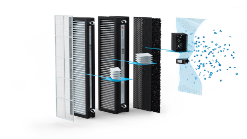 Эффективная очистка воздуха обеспечивается 5-ступенчатой системой фильтрации комплекса BREZZA, состоящей из сетчатого фильтра предварительной очистки, механического фильтра тонкой очистки F7 и комбинированного механического и угольного фильтра Н12 + carbon, который препятствует проникновению неприятного запаха и задерживает мельчайшие частицы пыли и аллергенов. Встроенный ионизатор увеличивает качество воздуха, повышая работоспособность и улучшая самочувствие.